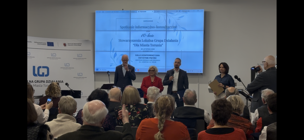 12 grudnia odbyło się uroczyste wręczenie Umów o warunkach i sposobie realizacji strategii Rozwoju Lokalnego Kierowanego przez Społeczność w latach 2021-2027 przez Zarząd Województwa Kujawsko-Pomorskiego. Lokalna Grupa Działania „Dla Miasta Torunia”, która funkcjonuje od 2016r, a której członkiem jest Gmina Miasta Toruń uzyskała dzięki temu 1.300.000 Euro na działa wspierające mieszkańców Torunia. Środki te, dysponowane w grantach, będą odpowiadały na potrzeby takich grup jak: dzieci i młodzież, seniorzy, edukacja osób dorosłych oraz wspieranie równouprawnienia i niwelowanie stereotypów związanych z płcią.