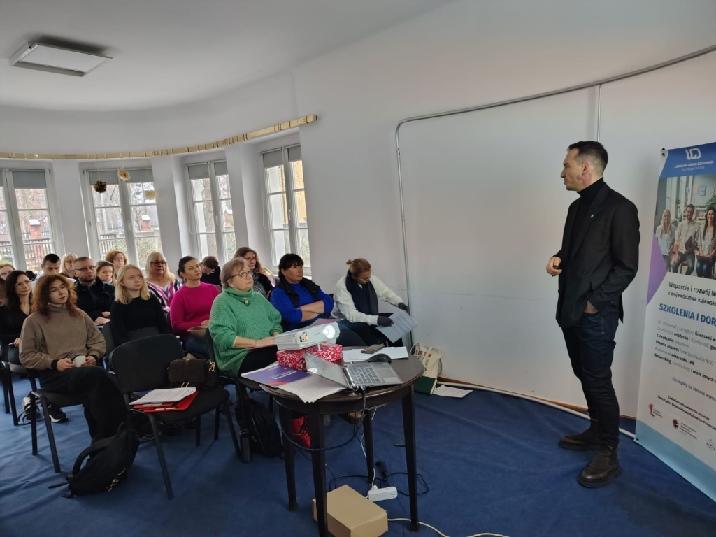 Od kwietnia do grudnia 2025 r. realizowaliśmy na zlecenie samorządu województwa kujawsko-pomorskiego projekt „Wsparcie i rozwój NGO z województwa kujawsko-pomorskiego”. W jego ramach prowadziliśmy szkolenia dla przedstawicieli i i przedstawicielek organizacji pozarządowych. Tematyka szkoleń dotyczyła funkcjonowania NGO we współczesnym świecie: zarówno kwestii administracyjnych, prawnych i związanych z pozyskiwaniem funduszy, jak i zastosowania nowych technologii, takich jak media społecznościowe i narzędzia AI.